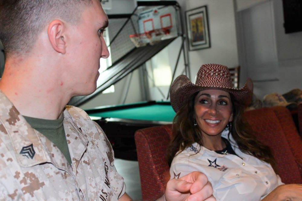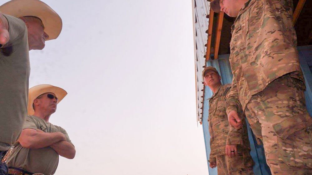 We ended our night with a patrol around the compound in total darkness. As midnight approached, Lucas had a great idea: what better way to top off the day than with a private concert in the kitchen for the night shift food preparation team. I’ll cherish Lucas singing one of his hottest new songs “Boom Boom” and Thomas backing him up with fantastic guitar accompaniment. It’s coming up on 0200hrs over ‘here’ – thanks for following along and remember to ‘Click On and Hang On’ with the Cowboy Lifestyle Network as the 7th Annual Wrangler National Patriot Tour rides on!