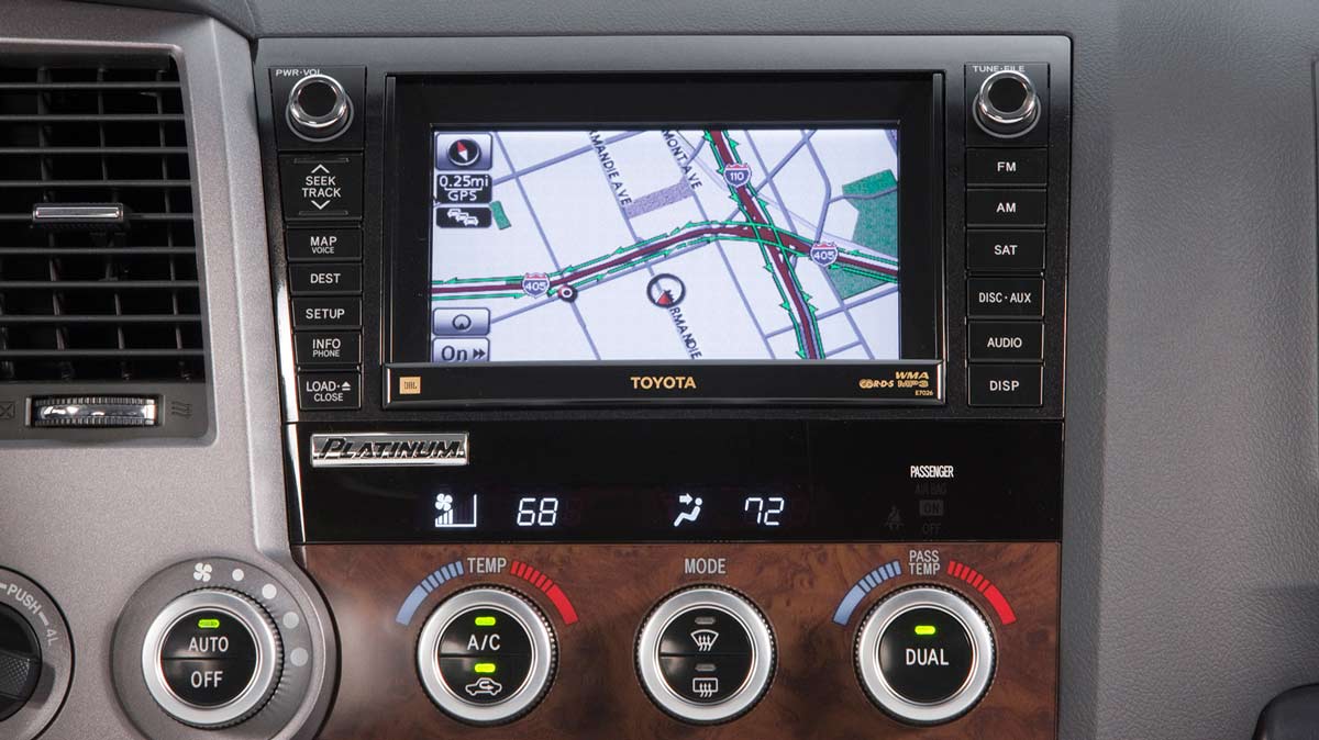 The Tundra interior offers comfort and style. Available driver- and passenger-side climate control keeps everyone content. Heated front-row seats can provide even more comfort. The optional vertical sliding rear window and moonroof make it even more fun to drive on pleasant days. Fold-up rear seats provide options for space. Three available truck bed lengths give choices for your hauling needs.