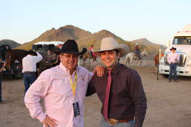 Rodeo News- Patrick O’Donnell and Binion Cervi, one of the owners and operators of Cervi Championship Rodeo. The Cervi Championship Rodeo company not only brings their World Champion bucking horses and bulls, but also a vast amount of energy and experience to the Cave Creek Fiesta Days Rodeo.