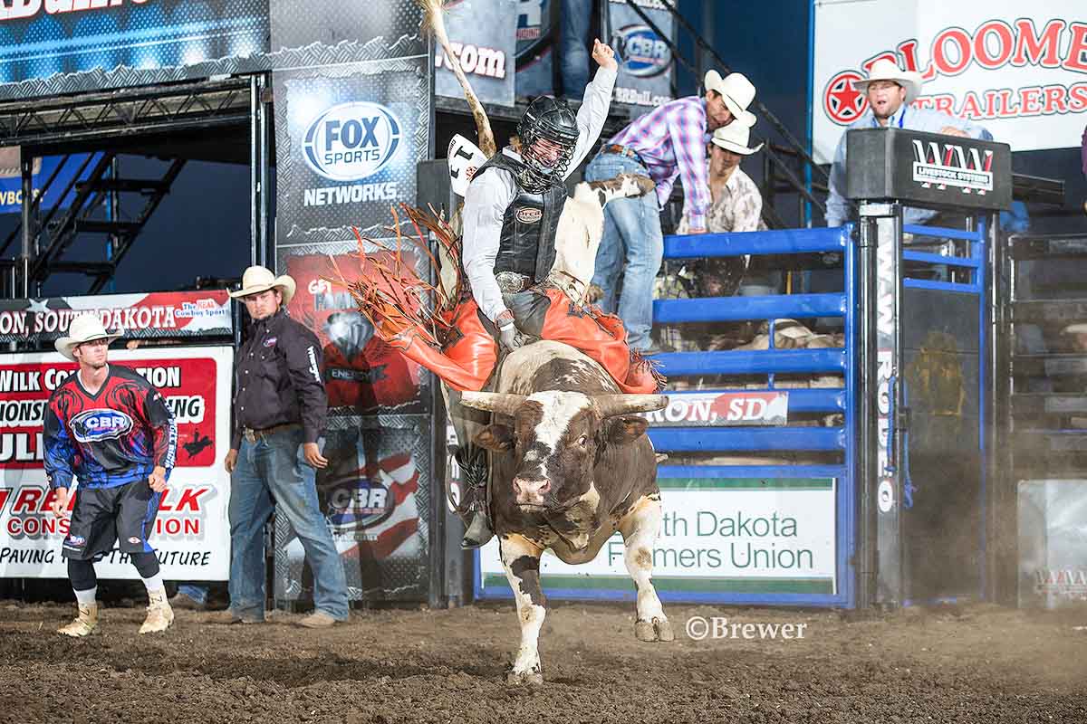 He collected his first September paycheck in Huron, South Dakota during the Championship Bull Riding (CBR) event at the South Dakota State Fair. Β On Thursday his 85.5 point ride put the first $1,500 in his bank account for the month. Β A home cooked meal and nine hundred miles later ending a Β 13-hour drive he bucked off Saturday in Palestine, Illinois at the Pioneer City Rodeo on a Championship Pro Rodeo bull. Β Β Β