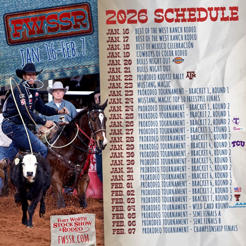 Since 1896, one event has captured the soul of Texas, and from January 16 to February 7, 2026, it’s your turn to feel the adrenaline of the Fort Worth Stock Show & Rodeo at Dickies Arena. Across 23 days of non-stop excitement, you’ll discover exactly why they say “This Thing is Legendary®” as you immerse yourself in an authentic Western lifestyle experience featuring the Best of the West Ranch Rodeo, Best of Mexico Celebración, Cowboys of Color Rodeo, Bulls’ Night Out, and the high-energy PRORODEO Rookie Rally. The action reaches its peak with the FWSSR PRORODEO Tournament in the world’s most awesome venue for rodeo. Still, the fun doesn’t stop there – immerse yourself in the stock show parade, livestock and horse shows, kid-friendly exhibits, live music, a vibrant carnival midway, elite shopping, great food, and more. Whether you’re exploring the deep history or creating new memories with your family, there is something to stir the spirit of every age, so secure your tickets today to ensure you don’t miss a single moment of this legendary Texas tradition.
