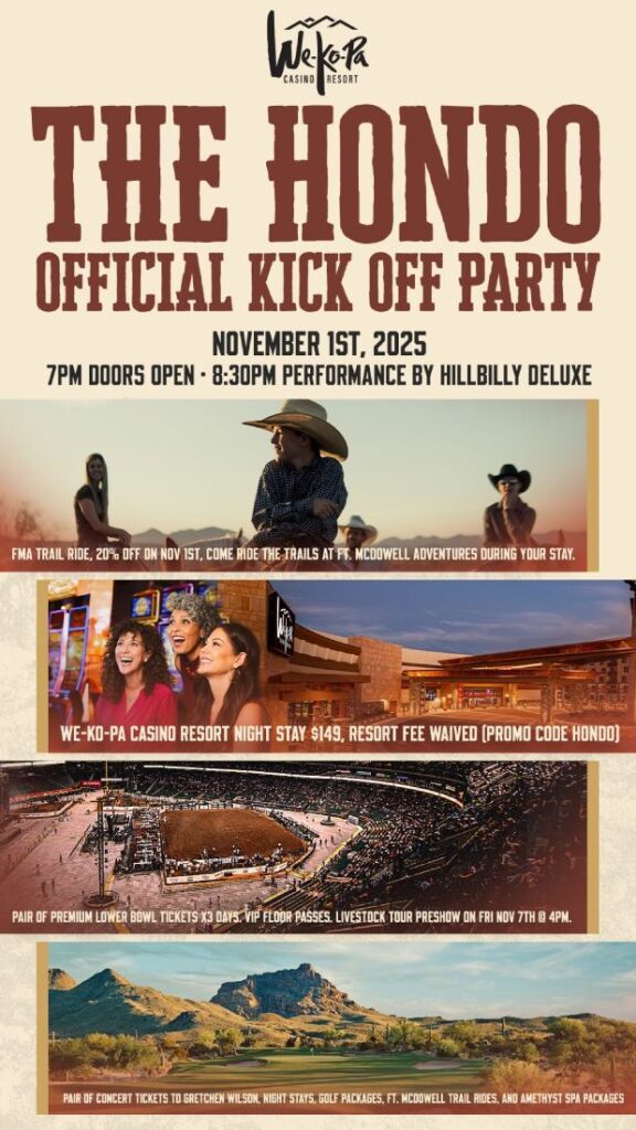 Interested in meeting the Hondo Rodeo Queen? Join Cowboy Lifestyle Network at the Hondo Rodeo Fest Offical Kick Off Party on November 1, 2025 at 7PM. Come on out to the We-Ko-Pa Casino Resort, listen to music by Hillbilly Deluxe and meet various Hondo Rodeo Fest team members including Rodeo Queen Raylen Riggs. So slip on your boots, grab your hat, and let’s kick off this Hondo Rodeo Fest. See y’all there!