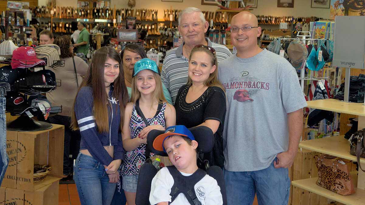 In February the Ludwig family enjoyed a shopping trip to the Saba’s store in Mesa on Superstition Springs Boulevard. Cole apparently inspired the Saba’s staff too. Initially, Cole’s prize was a pair of Cinch jeans. But once store staff met and spent some time with Cole, they decided to give him an extra gift of a belt too.