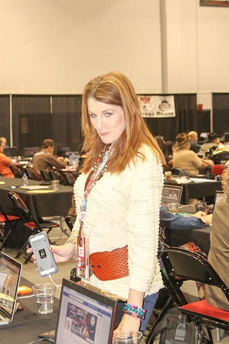 - Gretchen Kirchamann texting at the at the 2014 Wrangler NFR Press Room