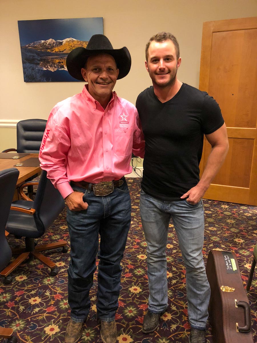 But that’s not the only place the CLN Team has spotted Dean Dillon on the rodeo road. Last year, the team ran into him at the Cattlemen’s Days Rodeo and Celebration in Gunnison, Colorado. There he gave a fantastic storytelling performance and concert with Easton Corbin in Crescent Butte, Colorado. It was incredible seeing Dean Dillon and his wife support the Wrangler’s Tough Enough to Wear Pink event last summer.