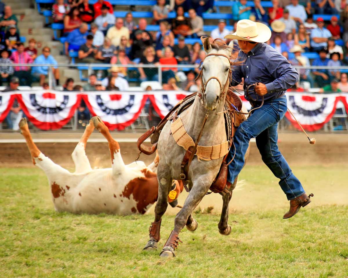 Cowboy and cowgirl contestants just call it the Green Mile. Until youโve stood that hallowed ground, your imagination canโt describe the canyon feel of the football field sized patch of lawn surrounded by racetrack and hovered over by surrounding grandstand. Timed event horses by this late in the season are at peak fitness, which didnโt mean every one of them didnโt leave the competition blowing hard and wondering what in the world was that!