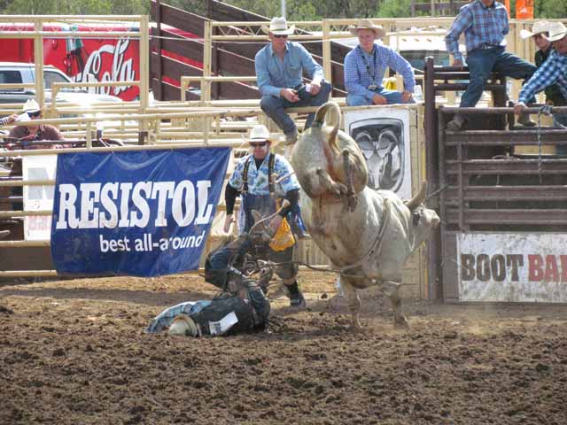 The main priority of the bull rider is to stay on the bull for at least 8 seconds. Courage, coordination, flexibility and balance are required in order to complete this event without sustaining many injuries. Most pictures can be quite scary, since the bulls used in this event weigh in excess of 2000 pounds. Pictures from the Professional Bull Riders tour are readily available on the internet. Bull riding is definitely one of the most popular rodeo events. (2/10/2012)